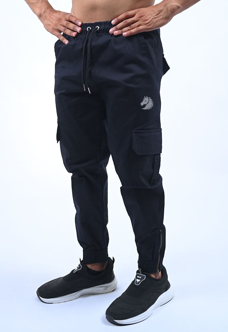 Bottom Zip Style 6 Pocket Style Imp Cotton Cargo Trouser Black