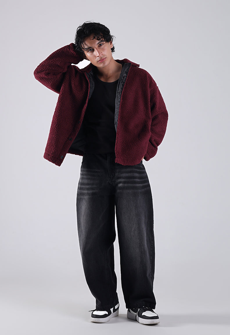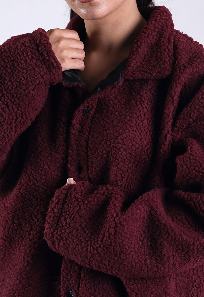 Essential Sherpa Jacket — Deep Maroon