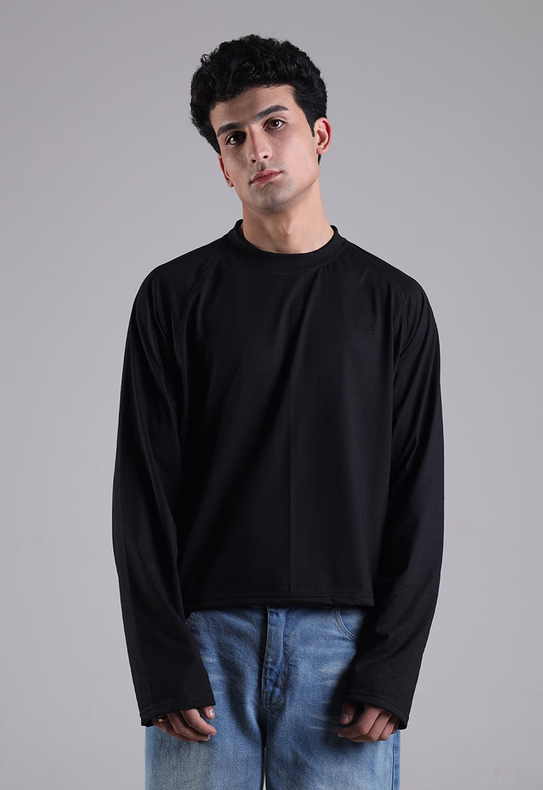 Long Sleeve Cropped Tee – Black