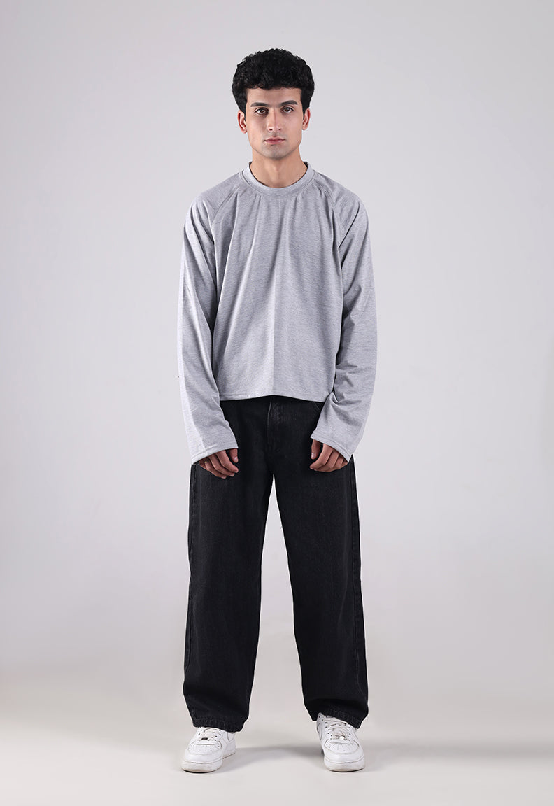 Long Sleeve Cropped Tee – Grey