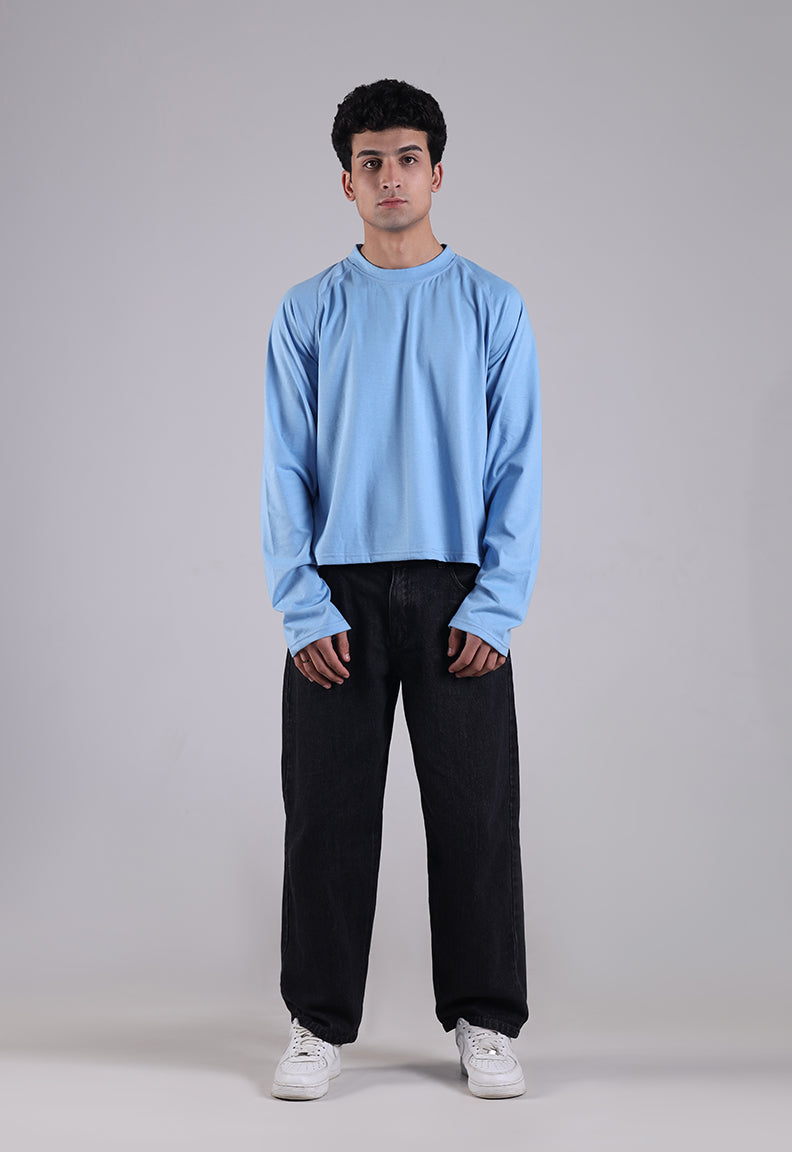 Long Sleeve Cropped Tee – Blue