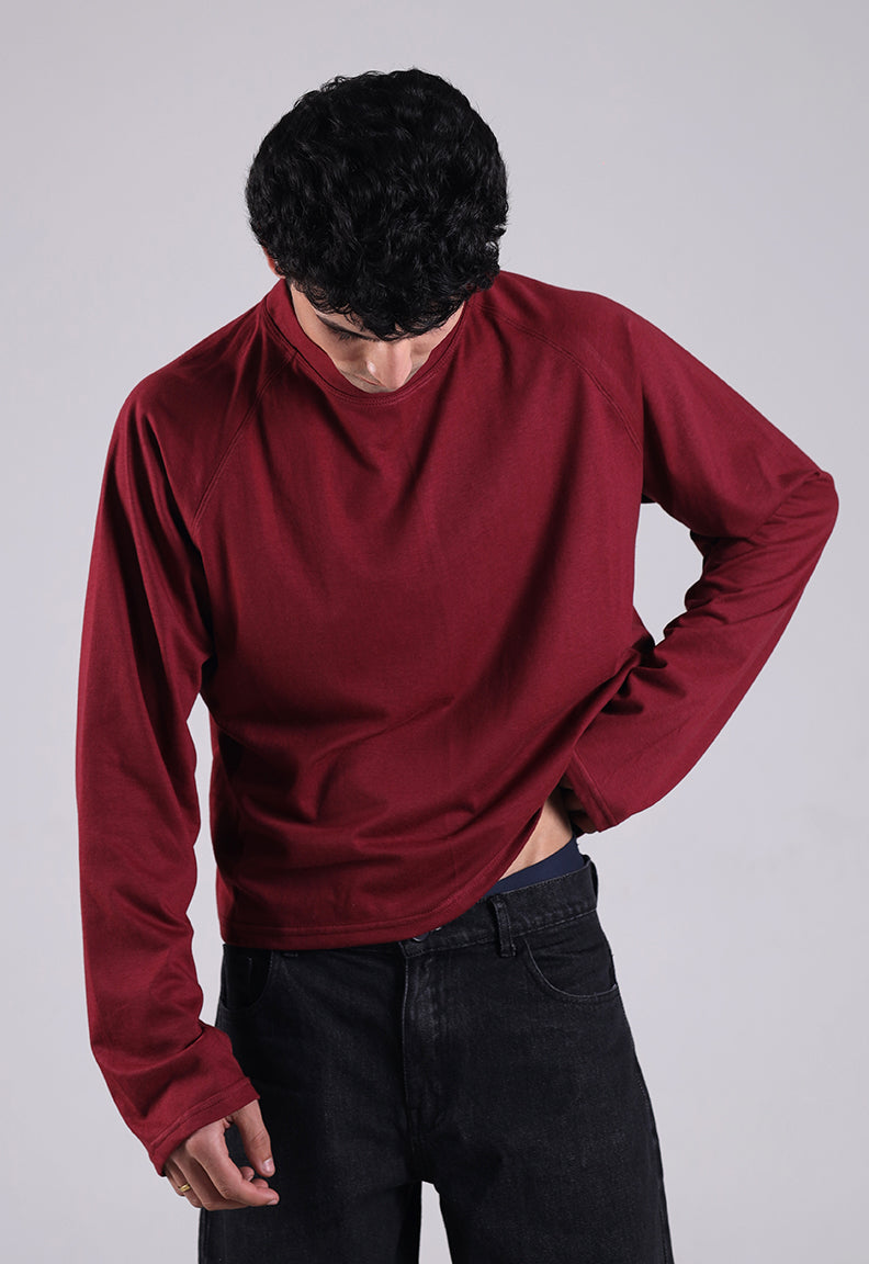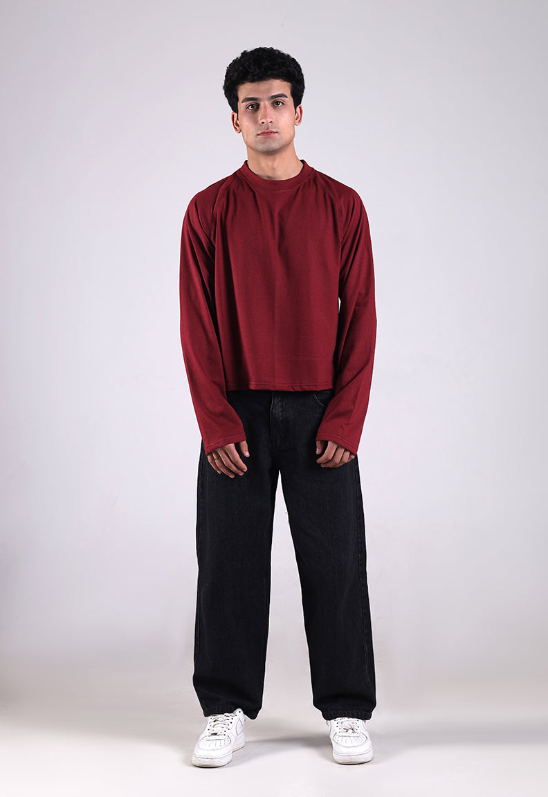 Long Sleeve Cropped Tee – Maroon